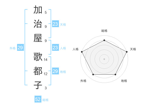 加治屋 歌都子さんを姓名の画数から五運を鑑定