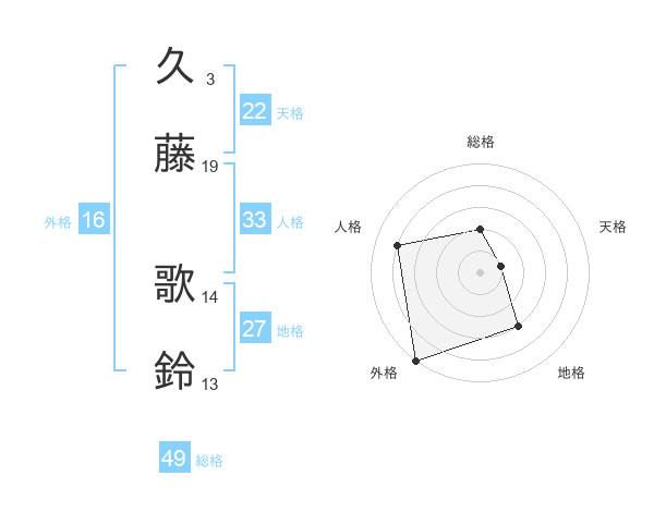 久藤 歌鈴さんの総格は49画の2点!