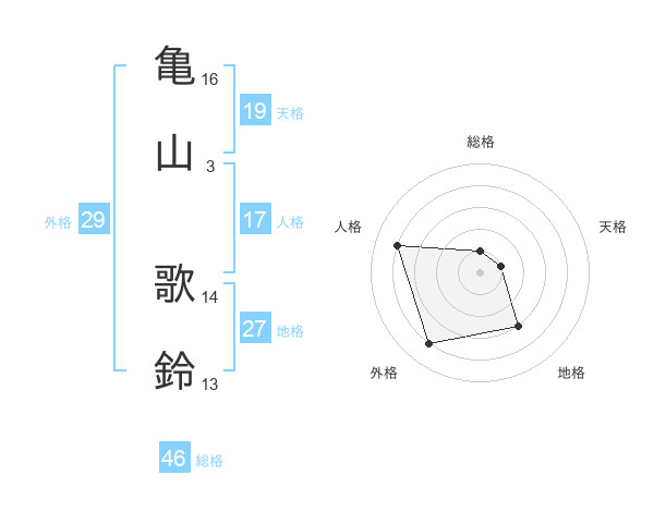 亀山 歌鈴さんを姓名の画数から五運を鑑定
