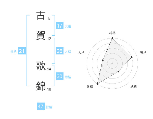 古賀 歌錦さんを姓名の画数から五運を鑑定