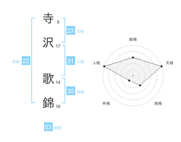 寺沢 歌錦さんを姓名の画数から五運を鑑定