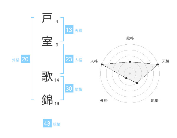 戸室 歌錦さんを姓名の画数から五運を鑑定
