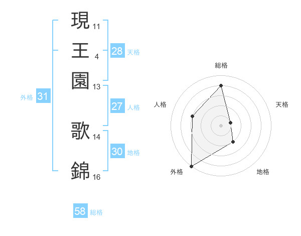 現王園 歌錦さんを姓名の画数から五運を鑑定
