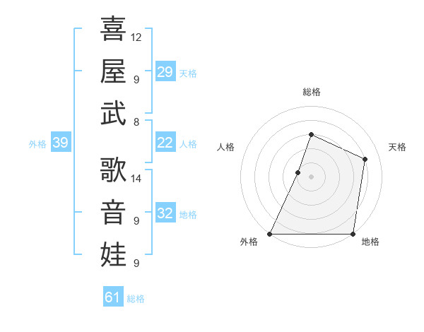 喜屋武 歌音娃さんを姓名の画数から五運を鑑定