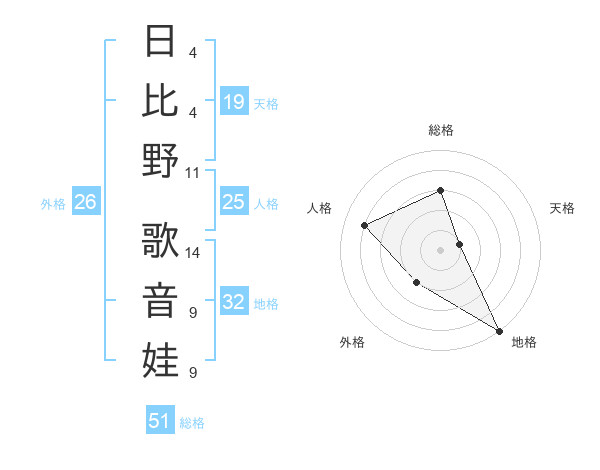 日比野 歌音娃さんを姓名の画数から五運を鑑定