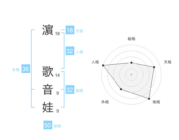濵 歌音娃さんの総格は50画の2点!