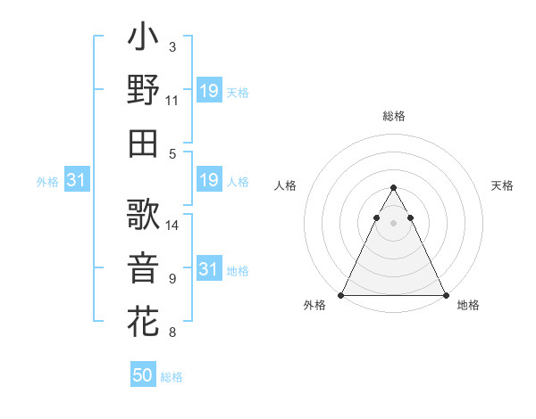 小野田 歌音花さんを姓名の画数から五運を鑑定