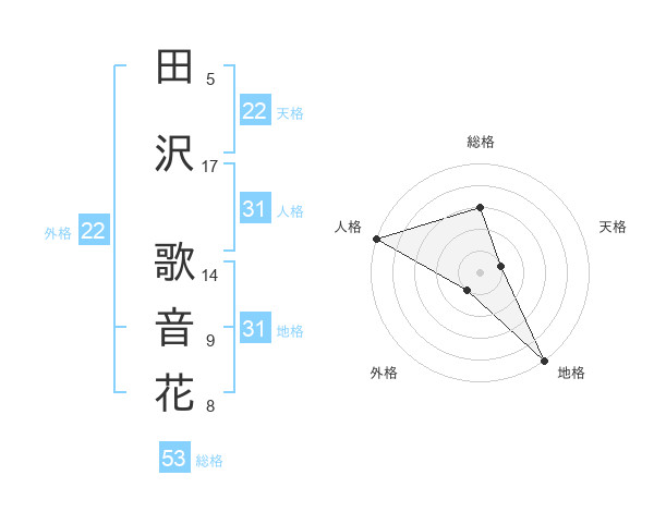 田沢 歌音花さんの地格は31画の5点!