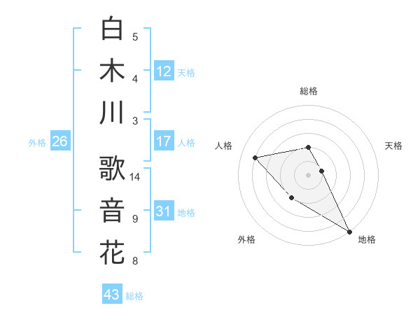 白木川 歌音花さんを姓名の画数から五運を鑑定