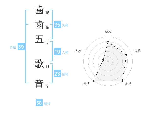歯歯五 歌音さんを姓名の画数から五運を鑑定