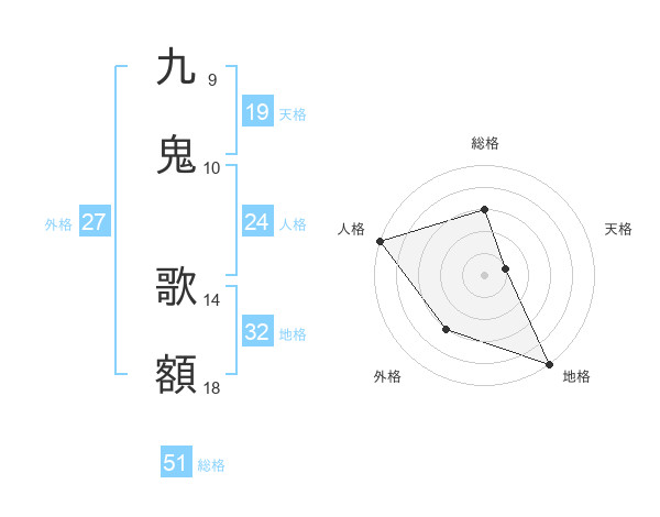 九鬼 歌額さんを姓名の画数から五運を鑑定