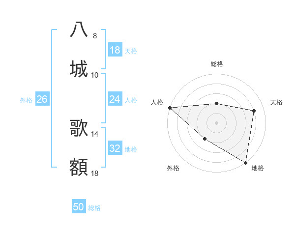 八城 歌額さんの総格は50画の2点!