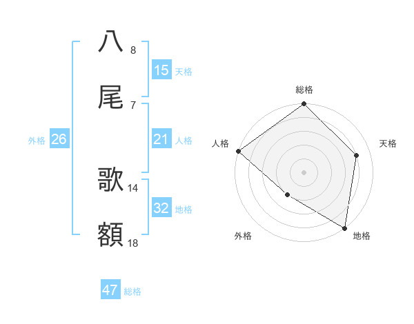 八尾 歌額さんを姓名の画数から五運を鑑定