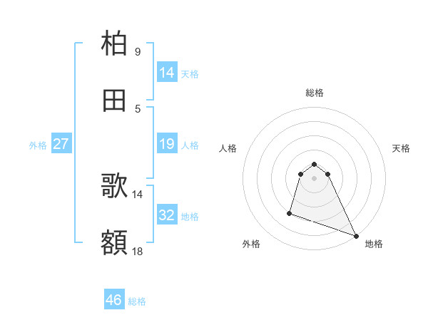 柏田 歌額さんを姓名の画数から五運を鑑定