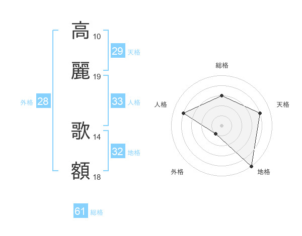 高麗 歌額さんの総格は61画の3点!