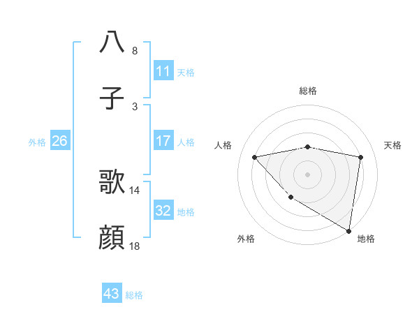 八子 歌顔さんの総格は43画の2点!