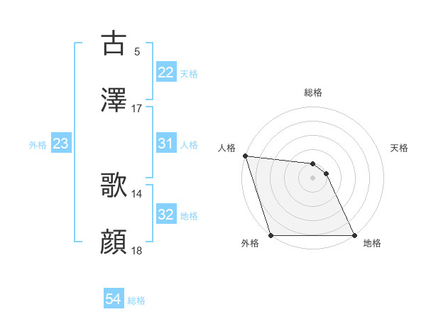 古澤 歌顔さんを姓名の画数から五運を鑑定