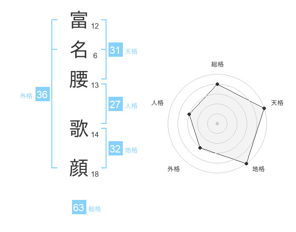 富名腰 歌顔さんを姓名の画数から五運を鑑定