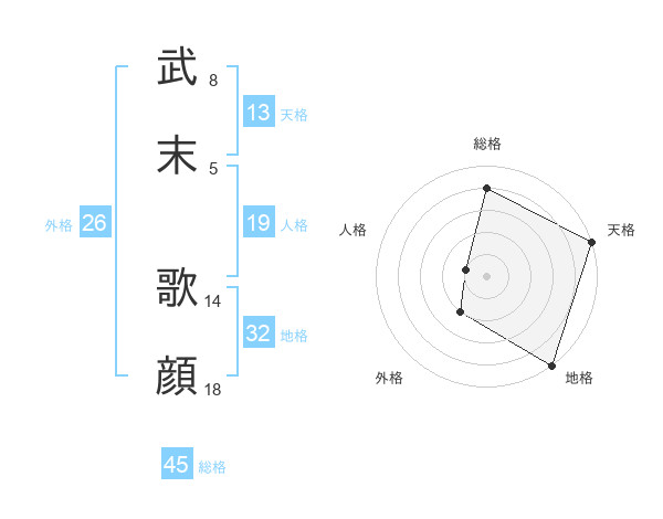 武末 歌顔さんの天格は13画の5点!