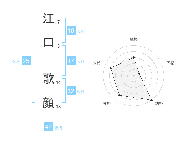 江口 歌顔さんを姓名の画数から五運を鑑定