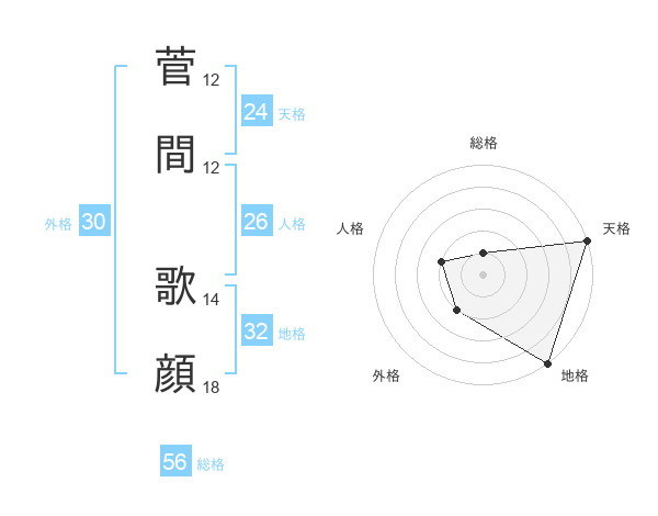 菅間 歌顔さんの天格は24画の5点!