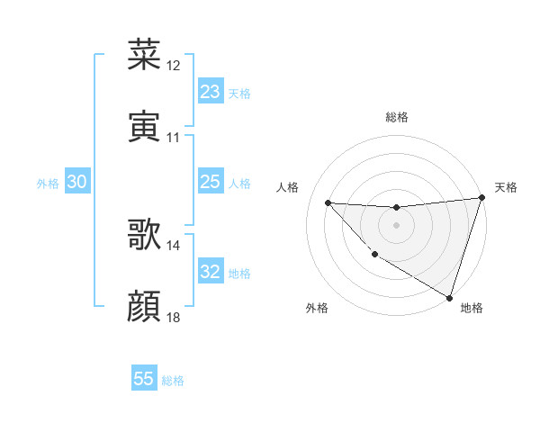 菜寅 歌顔さんの外格は30画の2点!