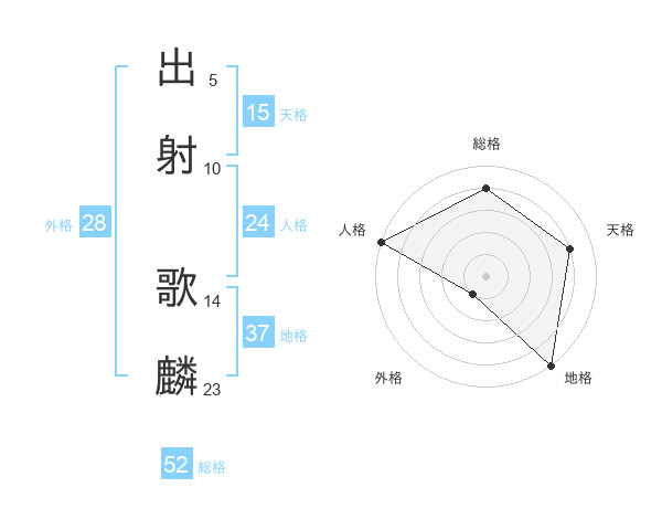 出射 歌麟さんの総格は52画の4点!