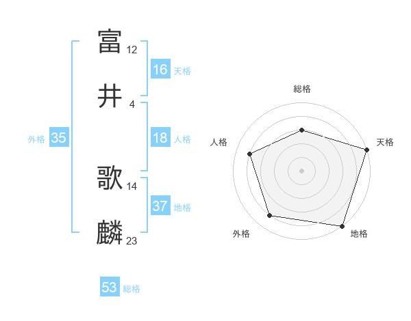 富井 歌麟さんの総格は53画の3点!