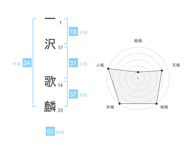 一沢 歌麟さんを姓名の画数から五運を鑑定
