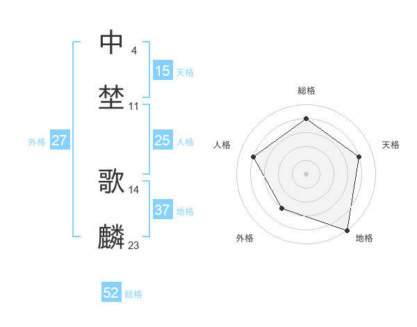 中埜 歌麟さんの総格は52画の4点!