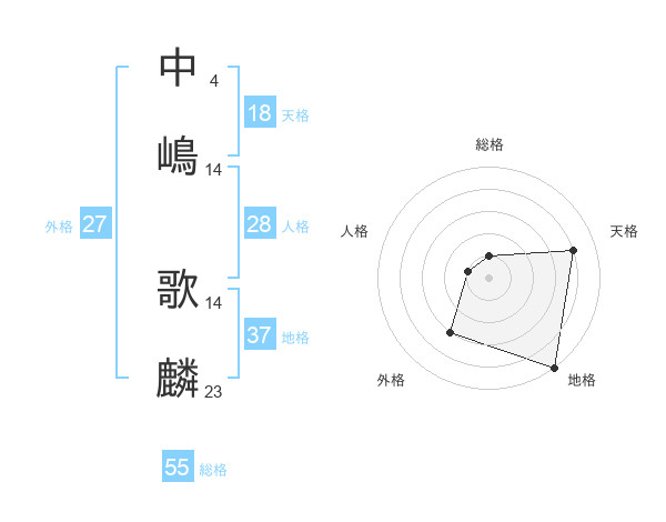 中嶋 歌麟さんを姓名の画数から五運を鑑定