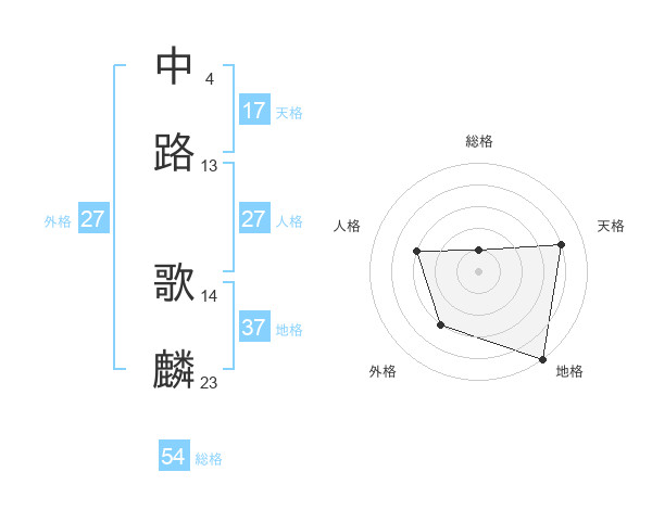 中路 歌麟さんの天格は17画の4点!