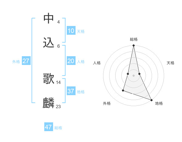 中込 歌麟さんの総格は47画の5点!