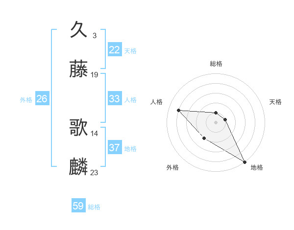 久藤 歌麟さんを姓名の画数から五運を鑑定
