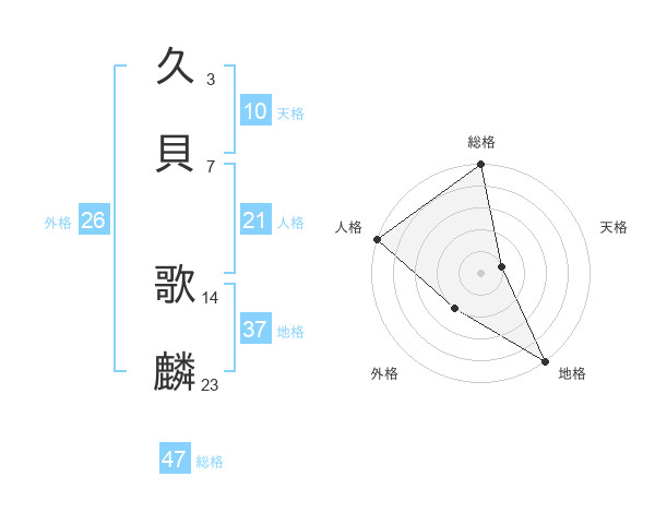 久貝 歌麟さんを姓名の画数から五運を鑑定