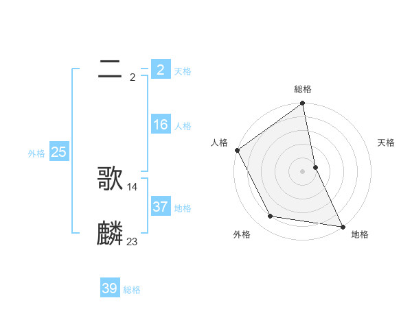 二 歌麟さんの総格は39画の5点!