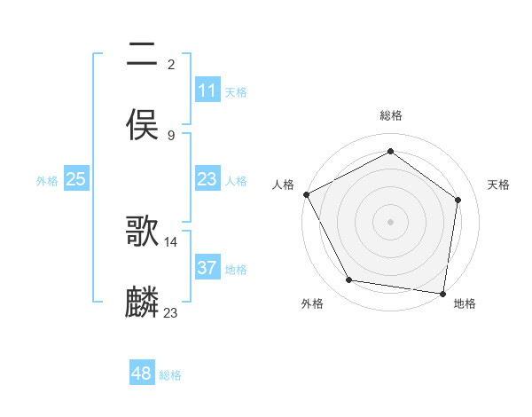 二俣 歌麟さんの外格は25画の4点!