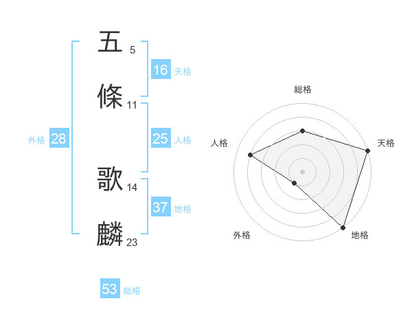 五條 歌麟さんの天格は16画の5点!