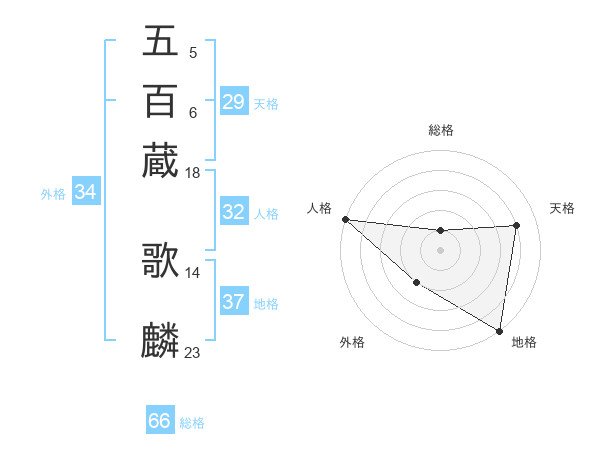 五百蔵 歌麟さんを姓名の画数から五運を鑑定