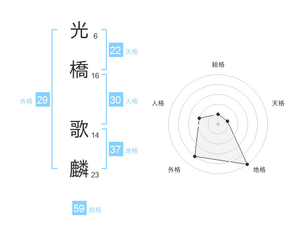 光橋 歌麟さんを姓名の画数から五運を鑑定