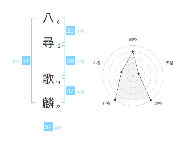 八尋 歌麟さんを姓名の画数から五運を鑑定