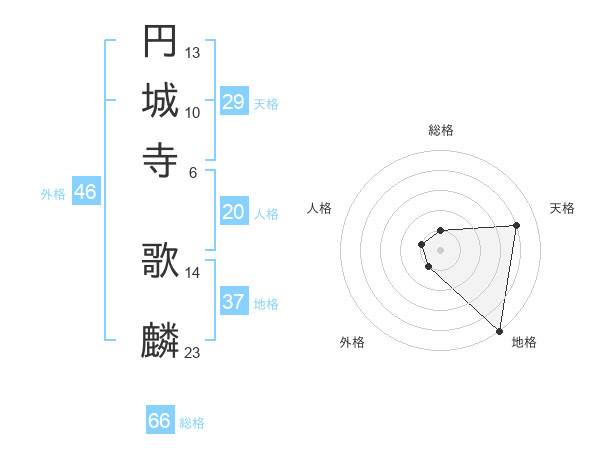 円城寺 歌麟さんの総格は66画の1点!