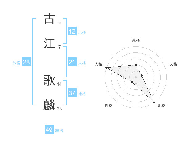 古江 歌麟さんを姓名の画数から五運を鑑定