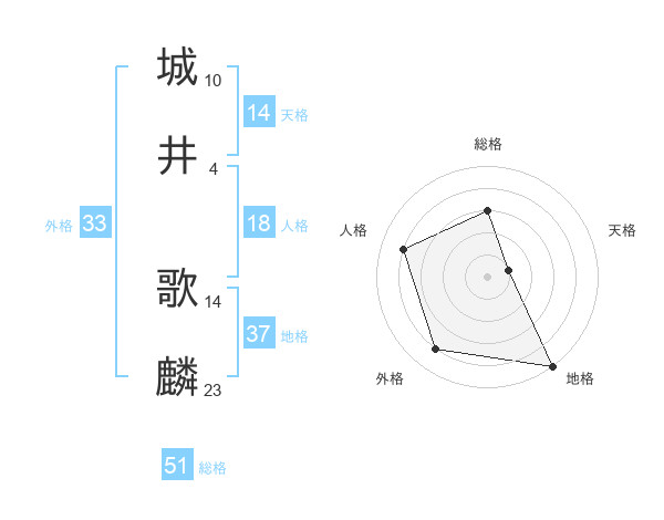 城井 歌麟さんを姓名の画数から五運を鑑定