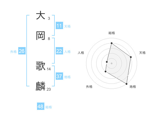 大岡 歌麟さんの総格は48画の4点!
