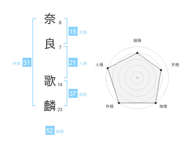 奈良 歌麟さんの外格は31画の5点!