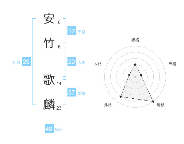 安竹 歌麟さんを姓名の画数から五運を鑑定