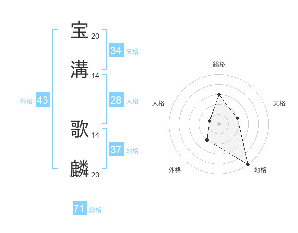宝溝 歌麟さんを姓名の画数から五運を鑑定
