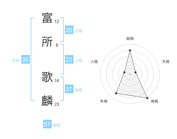 富所 歌麟さんを姓名の画数から五運を鑑定