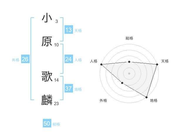 小原 歌麟さんを姓名の画数から五運を鑑定